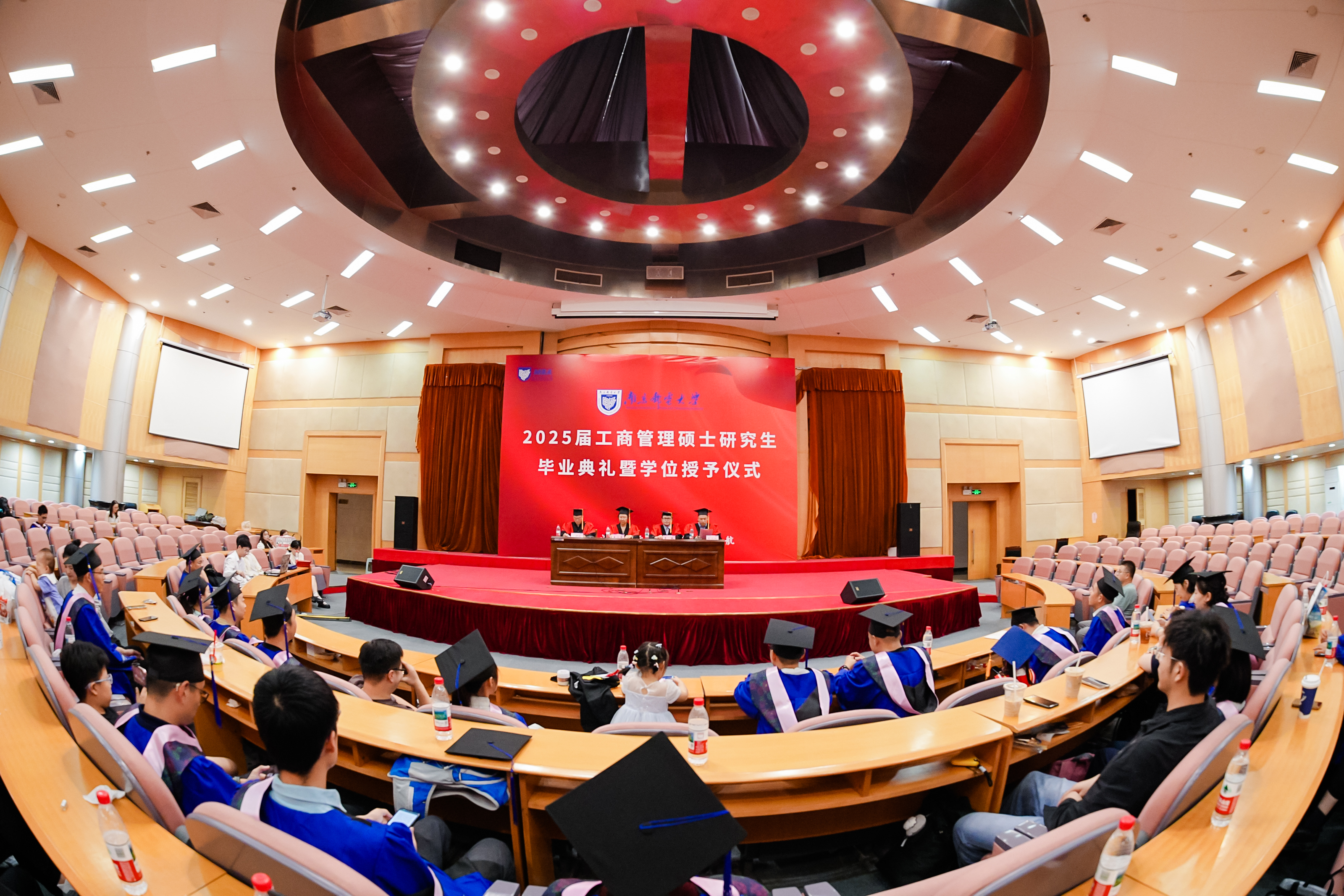 2025年9月13号下午,南京邮电大学2025届MBA毕业典礼暨学位授予仪式在三牌楼校区科技会堂二楼报告厅隆重举行。出席典礼的领导和嘉宾有南京邮电大学党委常委、副校长姜小舜,管理学院党委书记葛敏,MBA导师代表焦永纪,MBA中心主任王志军。典礼由管理学院副院长周晓剑主持。