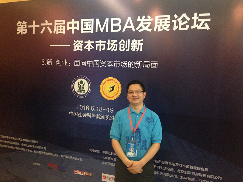 2016年6月18日-19日,第十六届中国MBA发展论坛暨资本市场创新论坛在中国社科院盛大举行。本届论坛由中国MBA发展论坛委员会、中国社会科学院研究生院主办,中国社会科学院研究生院MBA教育中心、中国社会科学院研究生院研究生会MBA分会、中国社会科学院研究生院MBA校友会承办,自全国的两百三十余家商学院代表,两百余家投资公司及新三板企业,近四十家媒体参加了本次论坛。南京邮电大学第五届MBA联合会主席朱明永参加了本次会议。